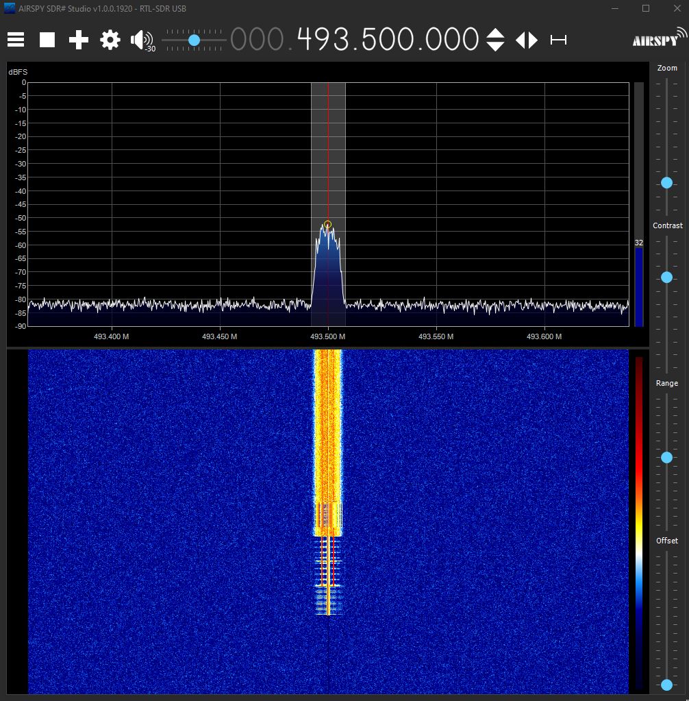 Under our licensing, we transmit on frequency 493.5 MHz with a maximum necessary bandwidth of 16 kHz, for the purpose of furthering scientific education and research. Maximum power is stipulated 83 W effective isotropic radiated mean power, although we cap our transmissions at 7 dBm, which is substantially below the required maximum. The transmitter is located at latitude -37.82 longitude 145.03, Melbourne, Australia.